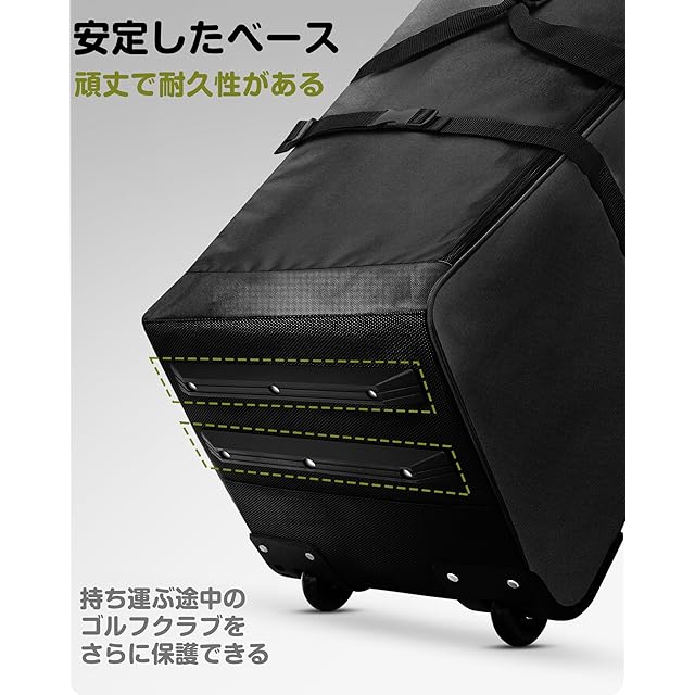 【フル強化インライン・ホイール】このゴルフバッグは、完全密封された強化インラインホイールと頑丈なラバーベースを備えています。高品質の車輪を使用することで、バッグの底生地と地面との摩擦を軽減し、より快適で便利な旅を実現します。