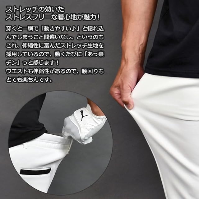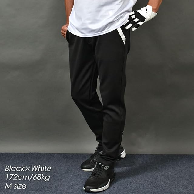 COMON GOLF(コモンゴルフ) ゴルフパンツ メンズ ゴルフウェア ズボン ストレッチ 大きいサイズ アンクル丈 テーパード ポンチ素材 ポケットライン 秋 CG-25010 XL ブラック×ホワイト