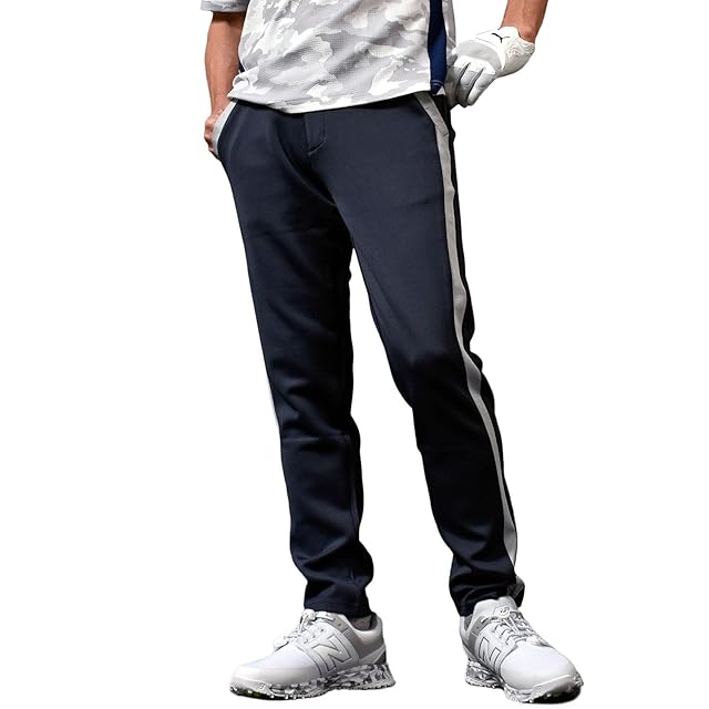 COMON GOLF(コモンゴルフ) ゴルフパンツ メンズ ゴルフウェア ズボン ストレッチ 大きいサイズ ポンチ ウエストゴム ライン テーパード 秋 CG-21013ST M ネイビー×杢グレー