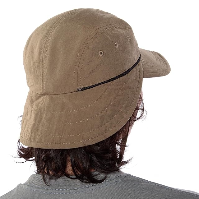 冒険心をくすぐるデザインキャップ。フロントとリアのハードバイザーが首回りを日焼けからガード。ナイロンタッサーの薄手生地と、サイドに隠れたベンチレーションにより、夏でも涼しく被ることができます。アゴ紐は着脱式で、キャップ内周も±1㎝のアジャスター調整が可能。ツバ裏は光の乱反射(眩しさ)を軽減するアイ・ブラックバイザー仕様です。 ■Weight:65g