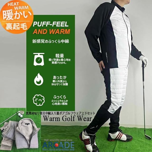 [アーケード] ゴルフウェア メンズ 上下セット 中綿ダウンセットアップ メンズ ダウンジャケット ゴルフパンツ アウター 暖か裏起毛ボアフリース ストレッチジャージ 秋冬 スポーツウェア リフレクター M グレーB