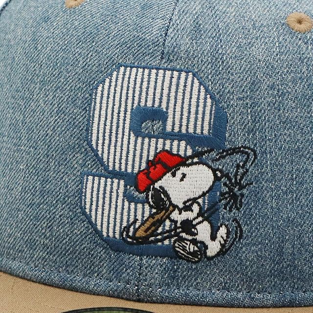 [ニューエラ] newera キャップ 59FIFTY 14676981 NER36C2132 ウォッシュドデニム/カーキ 青 ピーナッツ スヌーピー PEANUTS コラボ ONSPOTZ別注 メンズ レディース 帽子 ゴキュウフィフティー 5950 ストレート フラットバイザー春夏季節コーデ 人気サイズシール 大きい小さいサイズ 普段使いスポーツ野球帽
