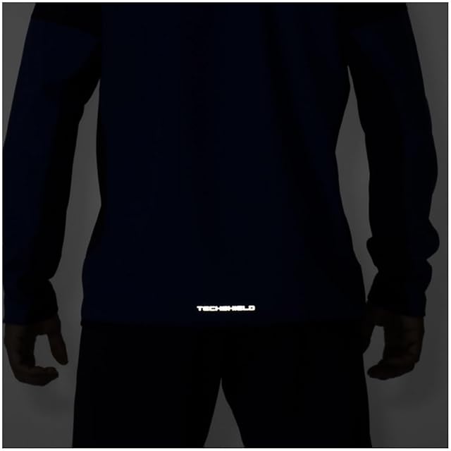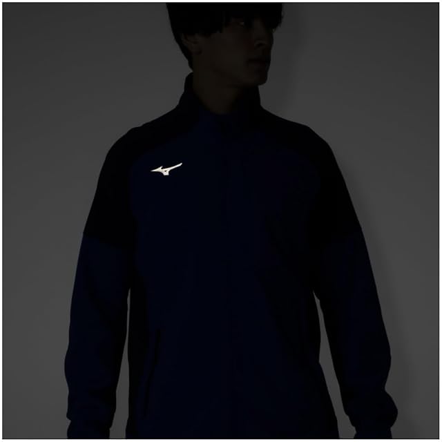 再帰反射ミズノマーク、TECHSHIELDマークが夜間の安全性を高める。