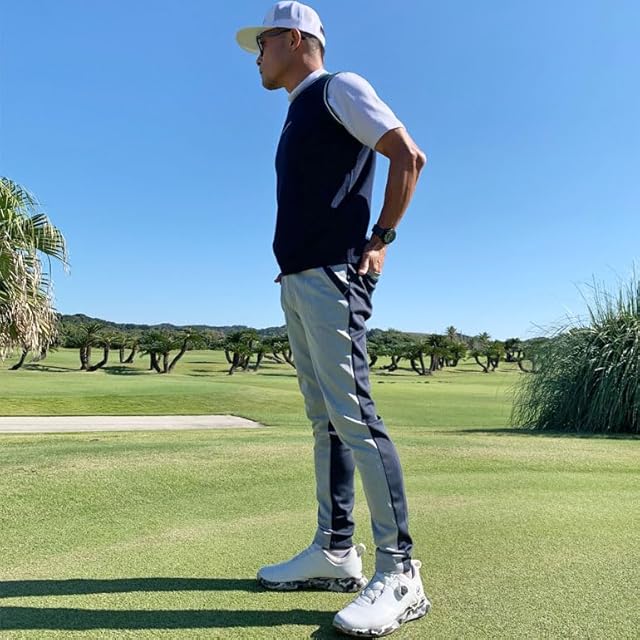 【 流行になる予感のパンツです。】大胆に前後の配色を変えたカッコよくお洒落なパンツです。スポーティー感もありヒットの予感を感じさせるゴルフパンツです。