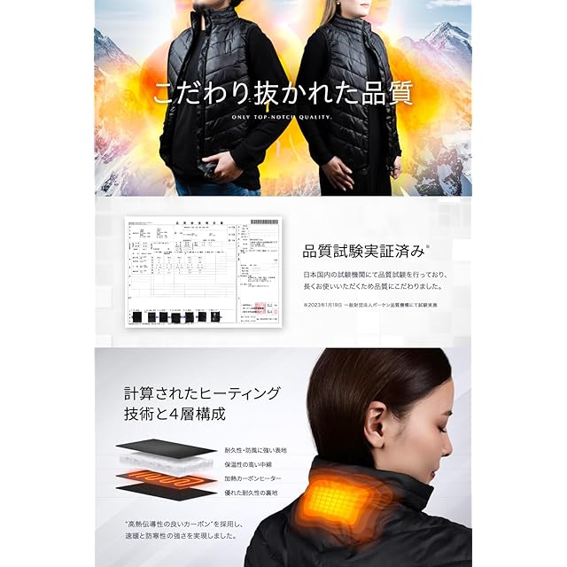 ✅ 3XLサイズ画像のサイズ表をご参考に、サイズをお選びください。 ✅【素材構成】表・裏地・中綿 : ポリエステル100% 【PSE認証取得済み】Excitech(エキサイテック)は、安心安全のPSE認証取得済みです。PSEとは電気用品安全法の基準に適していることを示す表示マークです。 【洗濯可能】ヒーター付きベストは洗濯可能です。※必ずモバイルバッテリーを取り外して、USBキャップを閉めてから洗濯してください。