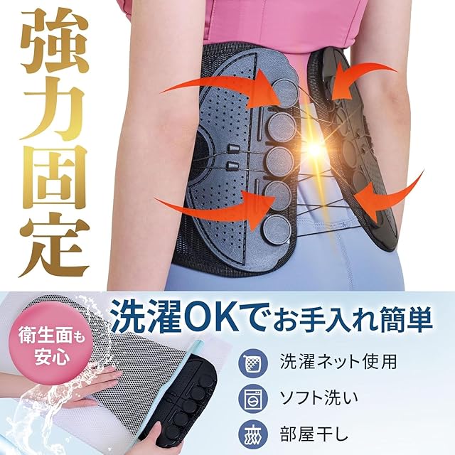 【力いらずでしっかりサポート】独自構造により、弱い力でもしっかり締め付け可能。女性や高齢の方でも無理なく装着でき、体に心地よくフィットします。
