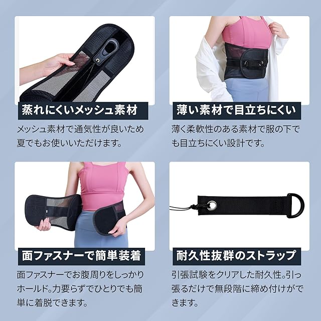 【あらゆるシーンで活躍】デスクワーク、立ち仕事、運転、スポーツ、日常使いまで幅広く対応。軽量設計で扱いやすく、産後やご年配の方のサポートにも最適です。