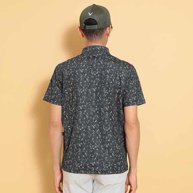 [キャロウェイ] メンズ 半袖 ポロシャツ (幾何学ロゴ柄・吸水速乾性) / ゴルフ / C25134111 1010_ブラック L