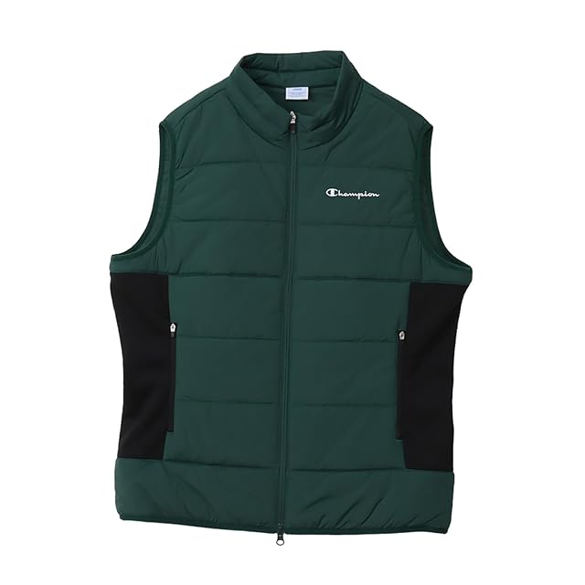[チャンピオン] ジャケット ストレッチ 保温 防風 撥水 スクリプトロゴ ジップベスト メンズゴルフ C3-AG604 ディープグリーン
