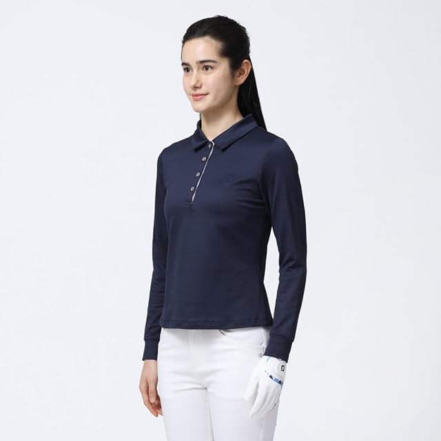 [フットジョイ] ゴルフシャツ Modern Classic リブニット長袖ストレッチシャツ FJW-F23-S03 レディース ネイビー M