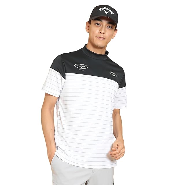 [キャロウェイ] メンズ 半袖 モックネックシャツ (吸汗速乾性・裏クール・ボーダー柄) / ゴルフ / C25134109 1010_ブラック M