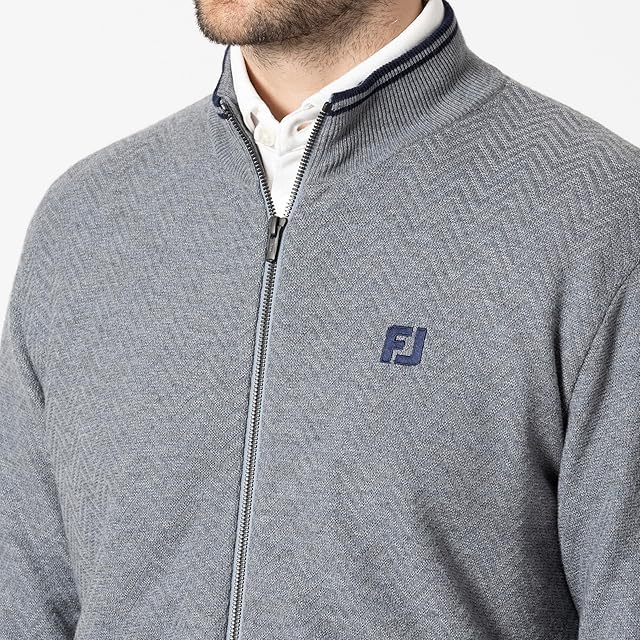 [フットジョイ] セーター ヘリンボーン柄 防風裏地付き 長袖フルジップセーター グレー メンズ XXL FJ-F24-M12 32134-XXL