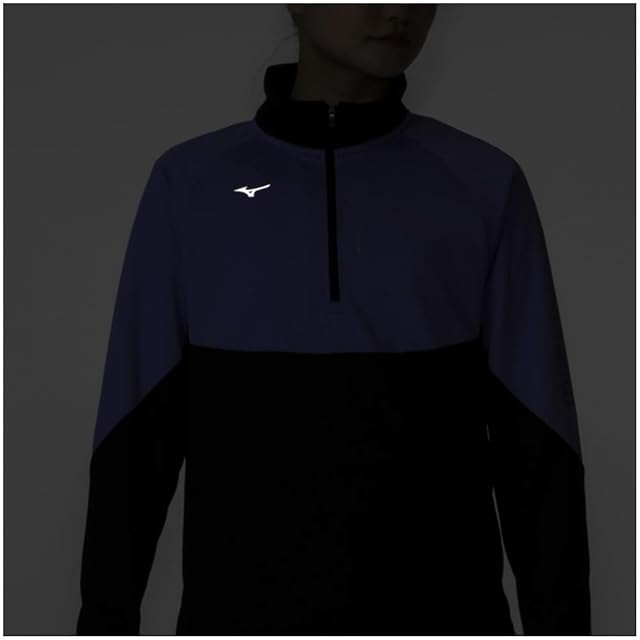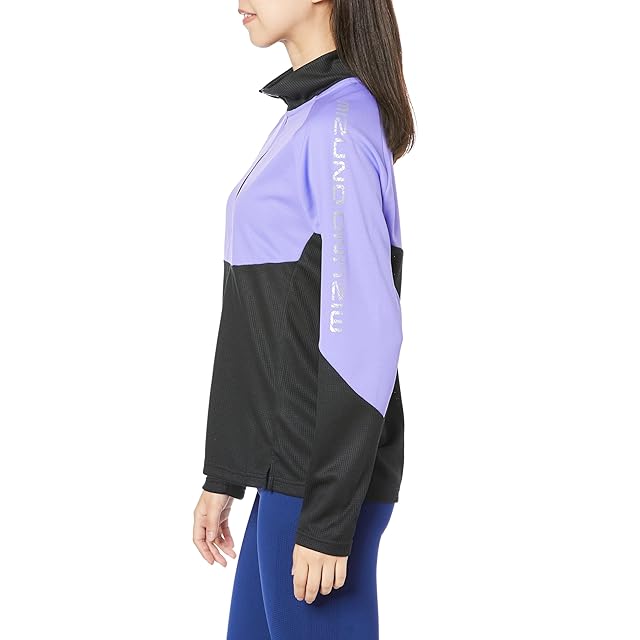 スポーティなハーフジップシャツ。左袖にMIZUNOロゴプリント入り。