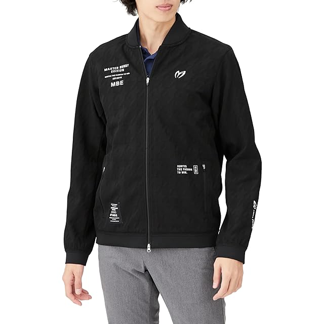 [マスターバニー] メンズ 長袖 フルジップスウェット (千鳥プリント・ストレッチ性・セットアップ対象) / ゴルフ アウター / 758-3262901 010_ブラック 5 [L]