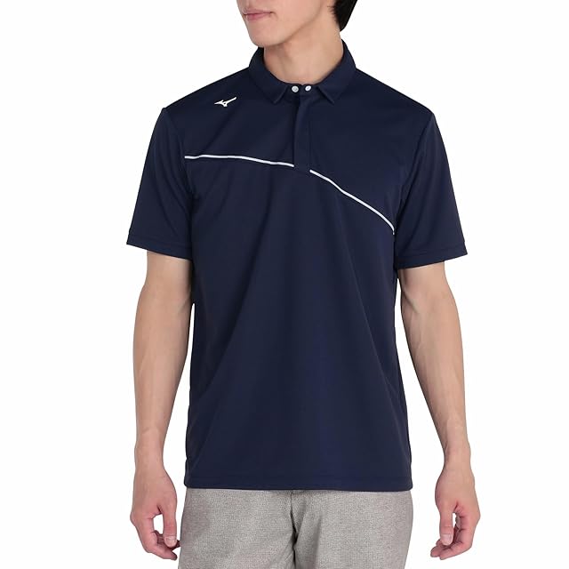 [ミズノ] ゴルフウェア ソーラーカット アイスタッチ 半袖 共衿ジップアップシャツ 遮熱 E2MAC001 ディープネイビー