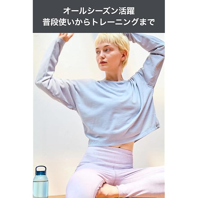 [super.natural] [sn] スーパーナチュラル JP 140 クロップド ロングスリーブ Tシャツ 吸汗 速乾 防臭 メリノウール ランニング トレーニング ハイキング ヨガ ピラティス (レディース) Jet Black Melange M