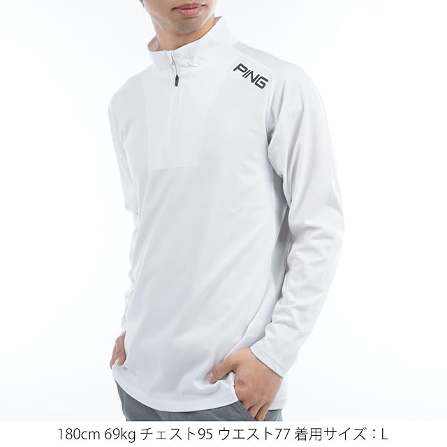 [ピン アパレル] メンズ 長袖 ハイネックシャツ [AddElmシリーズ](add.03テクノロジー) / ゴルフ / 621-5166105 030_ホワイト S