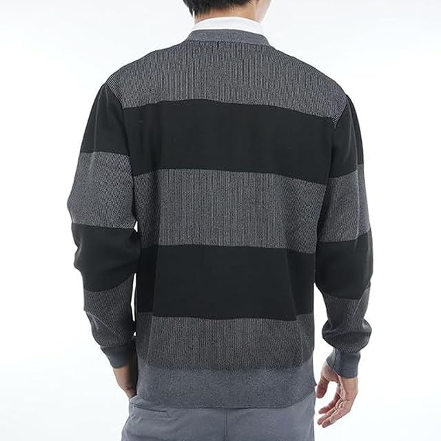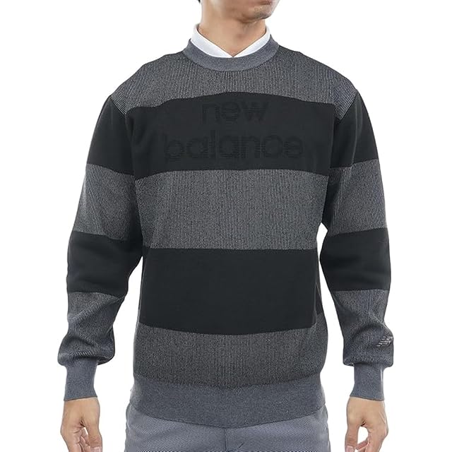 [ニューバランス] ゴルフ メンズ クルーネックニット (ボーダー柄・ストレッチ性) / 012-5270005 010_ブラック