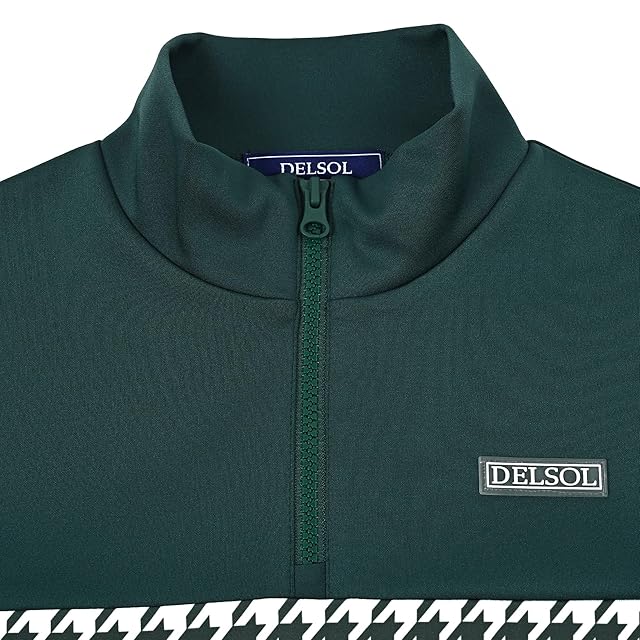 [Delsol] 7907 千鳥格子柄 ポンチ 長袖セットアップ GRN 伸縮性2025年秋冬 ゴルフウェア レディース ストレッチ性 ハーフジップ 大きいサイズ スカート トップス グリーン 緑 M L LL 3L 4L (JP, アルファベット, L, グリーン)