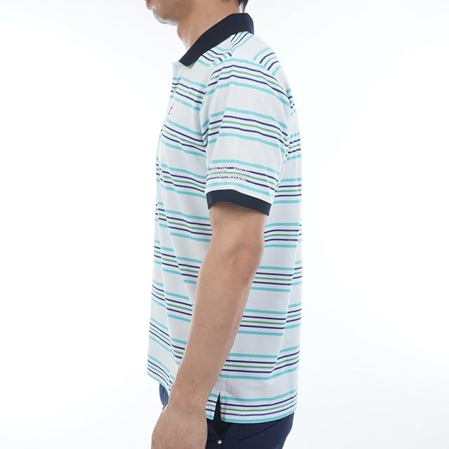 [マンシングウェア] 半袖シャツ 襟付き 鹿の子 ボーダー 吸汗速乾 マルチカラー ゴルフ MG5SHS85M メンズ EM00(エメラルド)