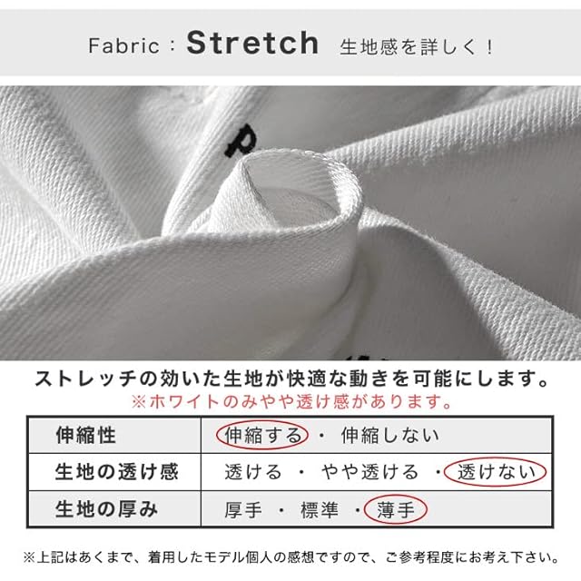 Material/素材感 かなりストレッチ性のある生地を採用し、 可動域の大きなゴルフの動きを ストレスなく行うことができる一本。 タイトなシルエットにすることで、 スタイリッシュにゴルフを楽しむことができる。