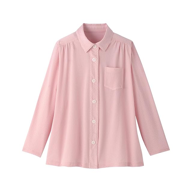 前・後ろ身頃とも、切り替え部分にギャザーを入れ、やさしい印象に。※左胸ポケット付き