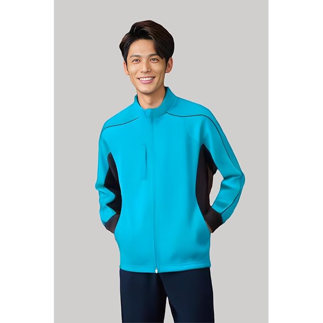[プロフィーリング] モダン インドアジャケット(男女兼用) 動きやすい 耐久性 吸汗 速乾 ジャージ スポーティー 介護 【PJ344】 ターコイズブルー SS