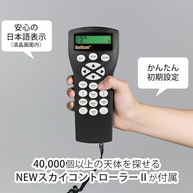 コントローラーには42,000個以上の天体が記憶され、多彩な天体観測楽しめる。