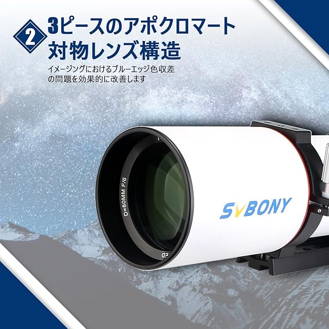 SVBONY SV550 天体望遠鏡 APO 三枚玉アポクロマート屈折式望遠鏡 星野写真撮影 星雲 天体写真用 深宇宙写真 (80mm)