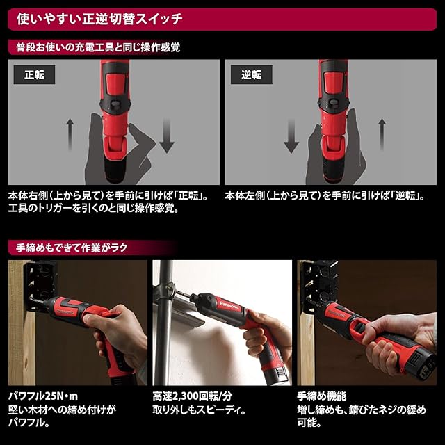 商品名:パナソニック 充電スティックインパクトドライバー 7.2V (1.9Ah電池パック×2個/充電器/ケース付)トルク25N・m ワイド・スポットLED搭載 EZ7521F07D-B ブラック