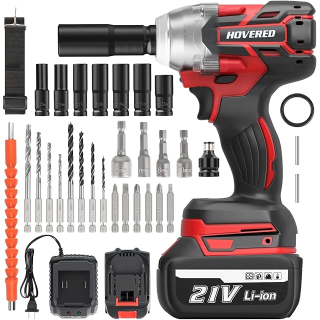 商品名:電動インパクトレンチ 21V 大容量 バッテリー2個セット 長時間 強力 最大トルク約350Nm 6000mAh HOVERED 自動車 インパクトレンチ タイヤ交換 無段変速 過熱保護 自動停止 インパクト 電動レンチ 電動ドライバー 電動ドリル コードレス ケース付き LEDライト付き