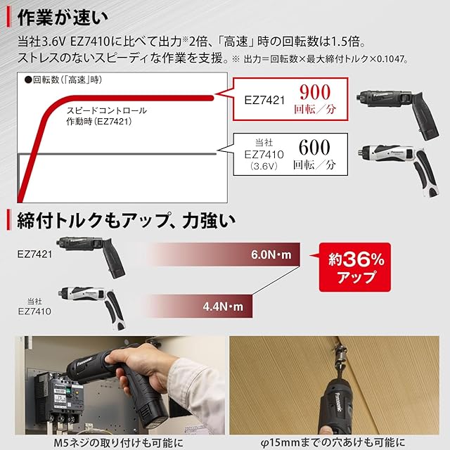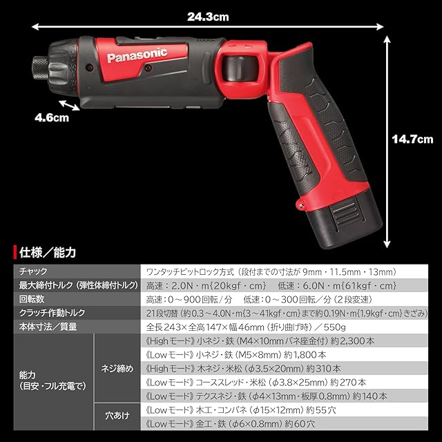 商品名:パナソニック 充電スティックドライバー EZ7421 (7.2V)高精度小型ドライバー ~M5 手元用ワイドLED搭載 1.9Ah電池パック×2個・充電器・ケース付 ドリルドライバー レッド EZ7421F07D-R