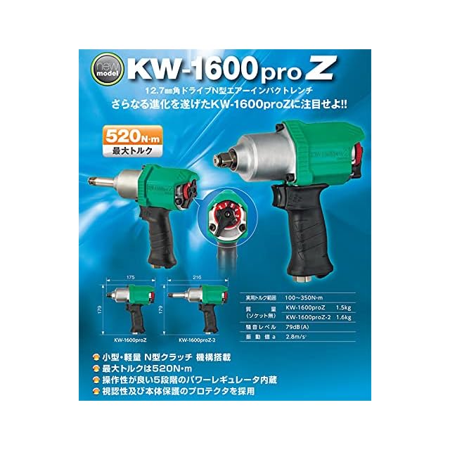 商品名:空研12.7SqエアーインパクトレンチKW-1600proZ
