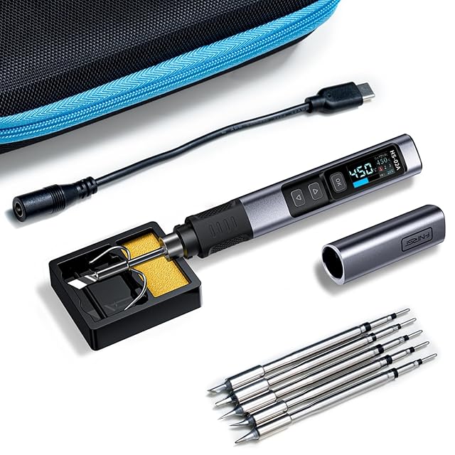 商品名:FNIRSI HS-02A ハンダゴテ 内熱式 ポータブルはんだこてキット 100W急速加熱 こて先付き 電子作業 USB給電 デジタル IPS表示 温度調節可100℃-450℃ DIY溶接ツール 持運便利 PD/QC/DC対応 半田付け 精密基盤 家電修理 スリーブ機能 キャップ付き