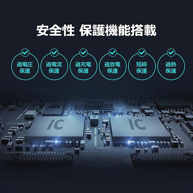 【充実の安全保護機能で安心してご使用可能】内部に高度な保護回路を搭載。過充電、過放電、過電流、短絡(ショート)、過熱からバッテリーと工具を守り、あらゆるシーンでの安全性を確保しています。PSE認証を取得しており、日本の安全基準にも適合しています。