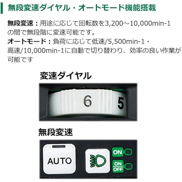 最大出力 1500W。従来機種G3610DAより20%アップしました。また、防じん性に配慮した本体設計の見直しにより耐久性を向上させました。