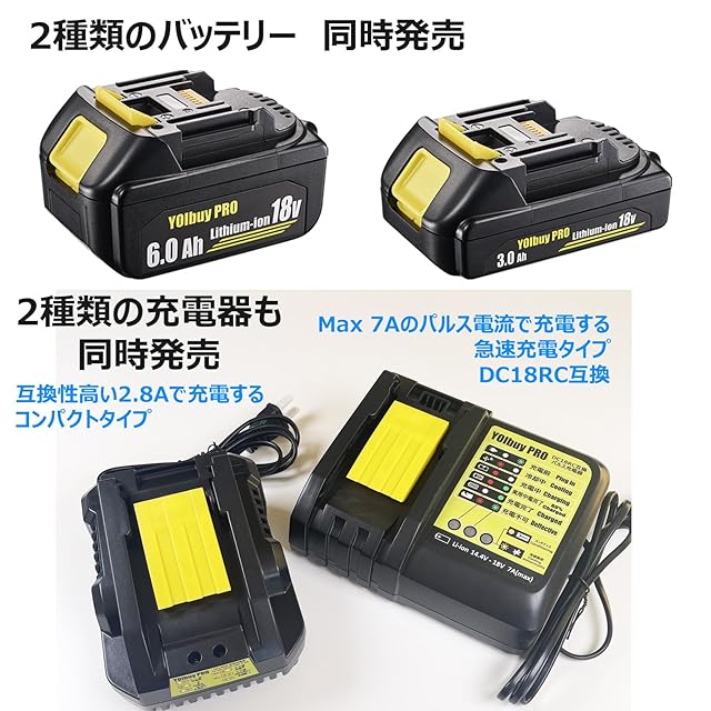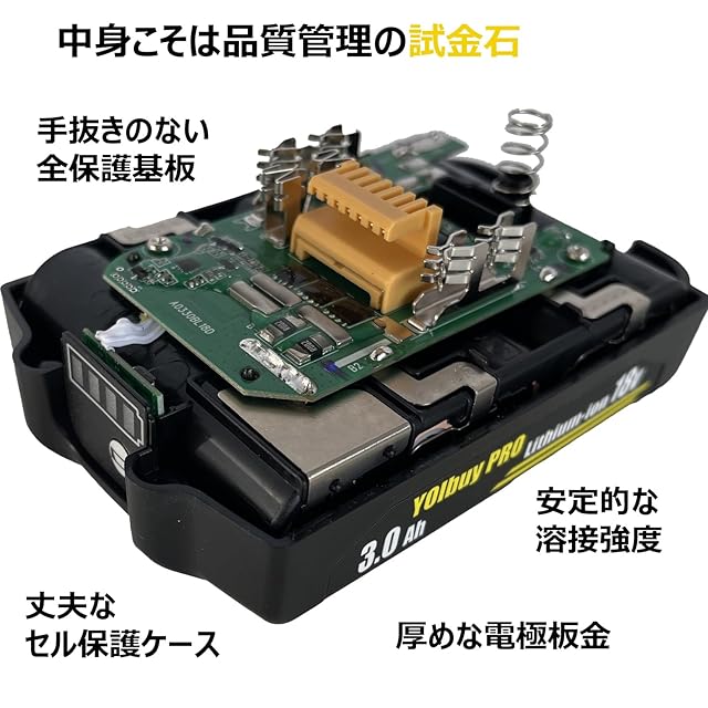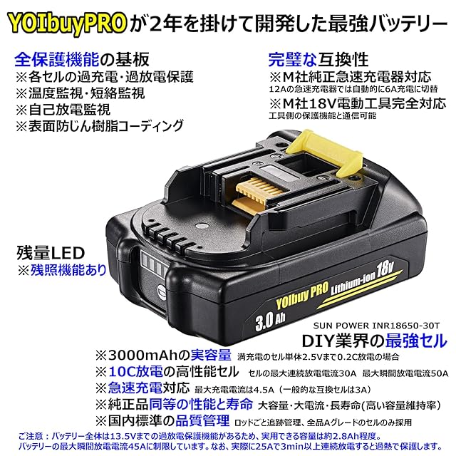 YOIbuy PRO 18V 薄型 リチウムイオンバッテリー 3.0Ah MKT 18V互換 全保護基板 最大放電電流45A 国内正規品 BL1830B (2)