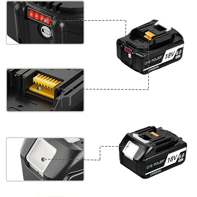 マキタ互換 18V バッテリー BL1860B 6.0Ah 対応 マキタ18V 電動工具用 防火材料シェルと長寿命電池セル採用 BL1820 BL1830 BL1840 BL1850 BL1860など 互換 製造物責任保険付 PSE認証済品 (OPR1860 4set battery New)