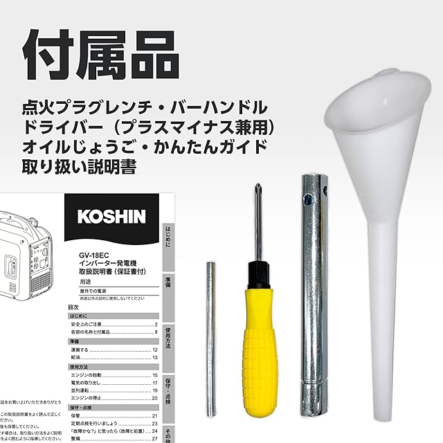工進(KOSHIN) インバーター発電機 GV-18EC 定格出力1.8kVA 正弦波 防音型 電力消費ランプ 軽量 高出力 静音 家庭用 ガソリン発電機 ポータブル発電機 並列運転 50Hz/60Hz切替 過負荷保護 オイル不足警告 キャンプ DIY キッチンカー 移動販売 イベント 建設作業 災害 USB TYPE-C