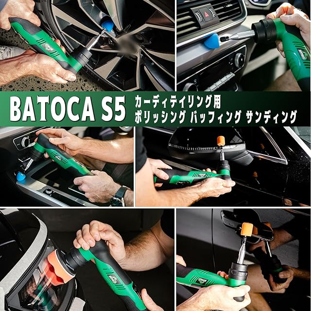 BATOCA S5 ポリッシャー ミニ 車 充電式 コードレス マイクロ 30mm/50mm/75mm 【DA/RO ツールレス・クイックチェンジ・システム】【車の隙間・内装・ホイール磨き・ヘッドライト】1kg 軽量設計 6段変速 12V 2.0Ah バッテリー2個・収納バック・日本語説明書付き