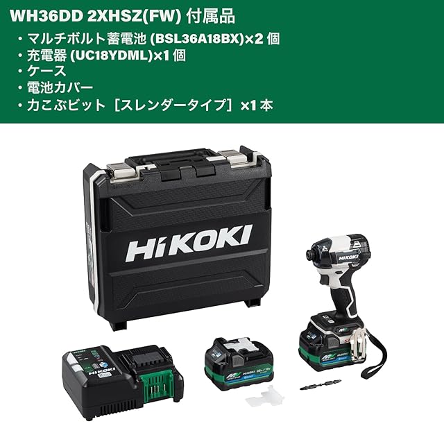 HiKOKI(ハイコーキ) 36V 充電式 インパクトドライバ フロスティホワイト 台数限定色 Bluetooth機能付蓄電池・2ポート充電器・ケース付 WH36DD 2XHSZ(FW)