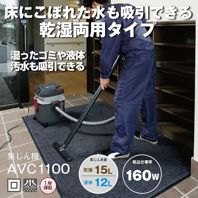 京セラ(Kyocera) 旧リョービ プロ用 集じん機 AVC1100 683454A ブラック 【乾湿両用タイプで木くずやホコリ、床にこぼれた水もスッキリと吸引】 吸込仕事率160W 集じん容量 乾燥(15L)・液体(12L) 排水ドレン付