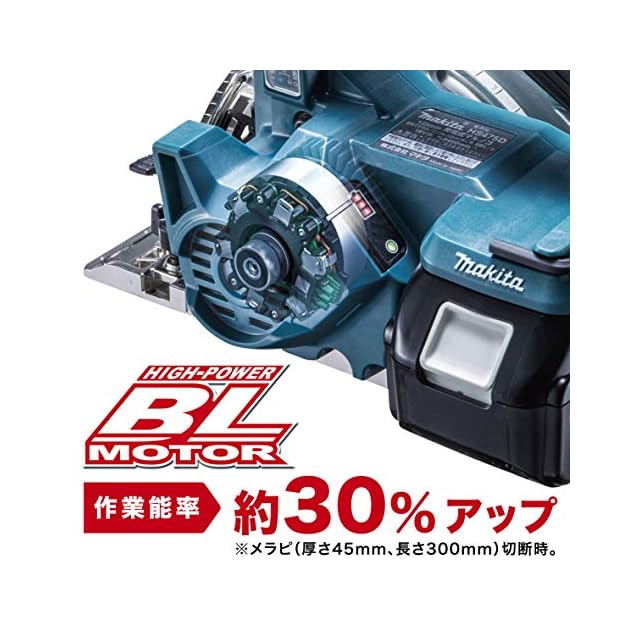 小さなボディに圧倒的パワー。(マキタ従来機比)作業能率約30%アップ。(マキタ従来機比、メラピ厚さ45mm×長さ300mm切断時)