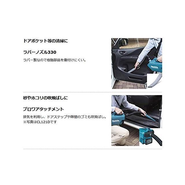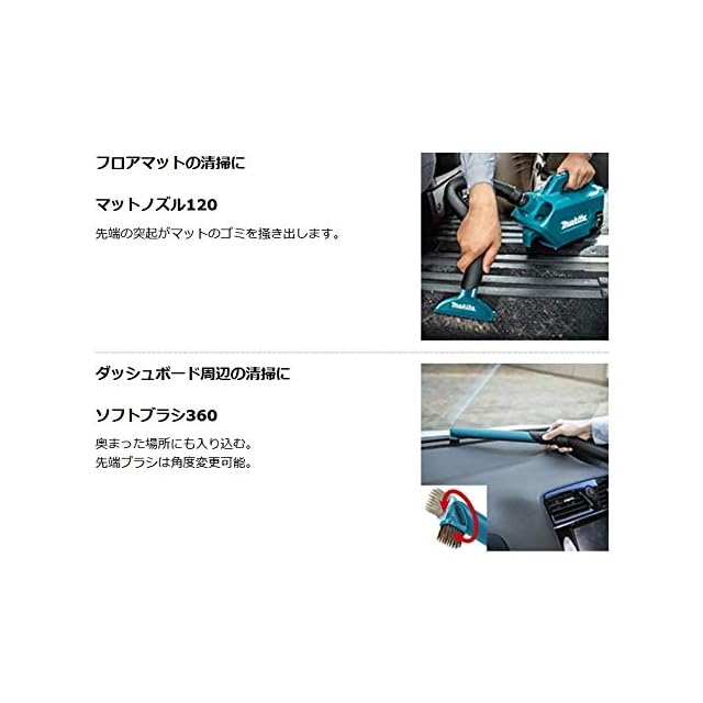 標準付属品:バッテリBL1830B・充電器DC18RF・ソフトバッグ・シートノズル120・マットノズル120・ラバーノズル330・ソフトブラシ360・ブロワアタッチメント・ダストバッグ・抗菌紙パック(10枚)・ショルダーベルト付