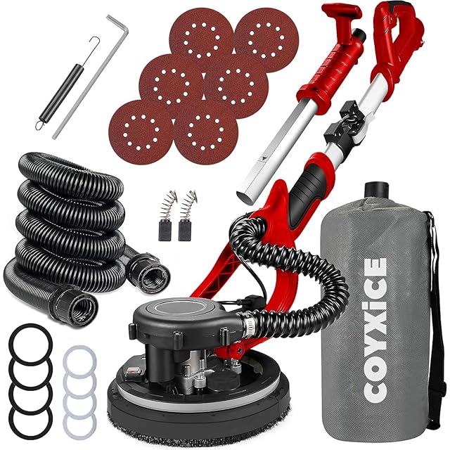 商品名:COYXiCE 電気ドライウォールサンダー 800W 電動サンダー 110V ポールサンダー 伸縮可能なハンドル 7段変速 800-2100RPM 乾式壁サンダー 自動掃除機システムとLEDライト付き サンディングディスク ロングダストホース 集じん袋 石膏ボード 壁 天井などの研磨作業に適している