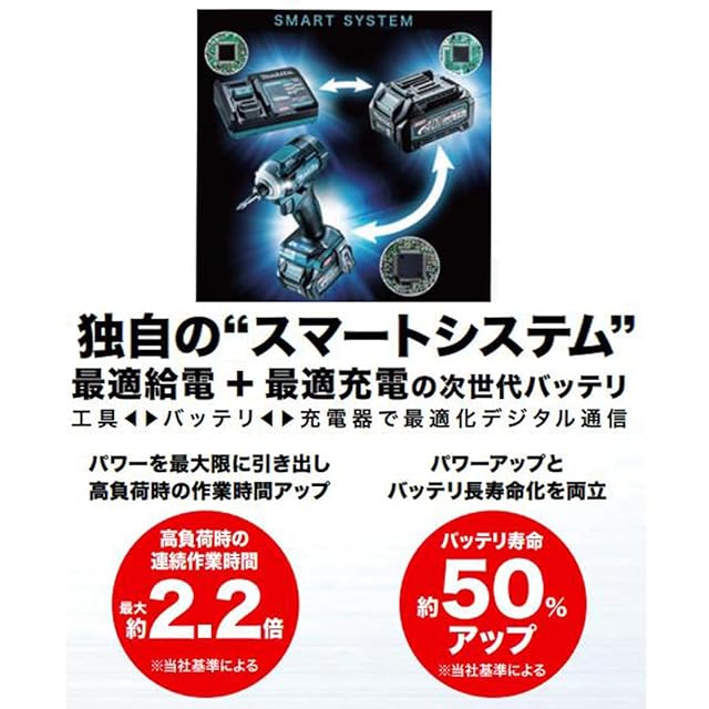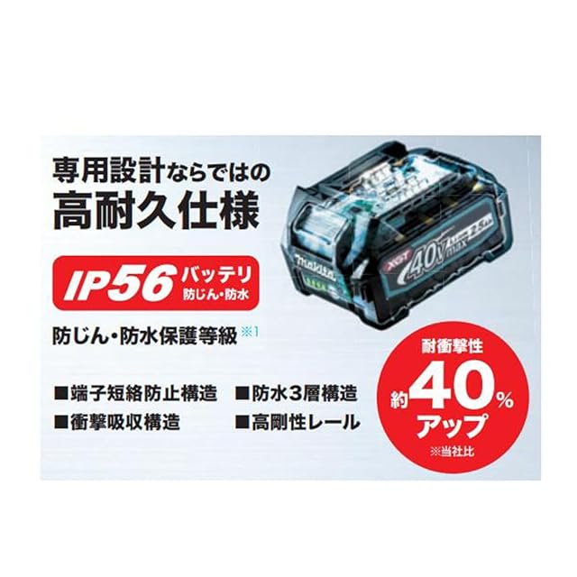 国内正規品(箱入) ●最適給電+最適充電の次世代バッテリ<br>●パワーを最大限に引出し高負荷時の作業時間アップ(高負荷時の連続作業時間最大約2.2倍)<br>●パワーアップとバッテリ長寿命化を両立(連続した高負荷作業時においても長寿命を実現、バッテリ寿命約50%アップ)<br>●最適給電システム/工具とバッテリと充電器の間で最適化デジタル通信これによりバッテリの状態に応じて工具とバッテリ間の給電制御を最適化しバッテリ負荷を最小化<br>●専用設計ならではのIP56高耐久仕様/端子短絡防止構造/防水3層構造/高剛性レール/衝撃吸収構造(耐衝撃性40%アップ)