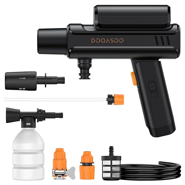 DOQASOO 高圧洗浄機 コードレス 充電式 バッテリー式 高性能5in1ノズル ペットボトル給水対応 【充電中使用可能】900g軽量 簡単セット 家庭用 洗車 ベランダ 網戸 自転車掃除 折りたたみ式 持ち運び便利 庭/屋外/階段/ガラス/ブロック塀/玄関/ベランダ/浴室/年末大掃除/キャンプ