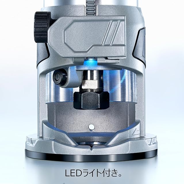 ソフトスタート機能、LEDライト、深さ調整クィックロック、集じんノズルなど、使いやすい機能が満載です。標準6mmのコレットコームに加え、1/4インチ(6.35mm)と8mmの付属品も同梱されています。
