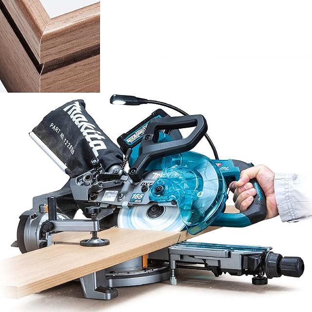 1尺材を一発切断可能。ノコ刃外径165mmで最大切断能力は幅312×高さ51mm。墨線が見やすい右側スライドポール。切断スピード約2倍。ハイパワーブラシレスモータ搭載、AC機を超える高速切断。※マキタAC機比。(メラピ/幅240mm×高さ40mm時)。定回転制御で安定した切断。高負荷時も安定した回転数でキレイな切断面を実現。