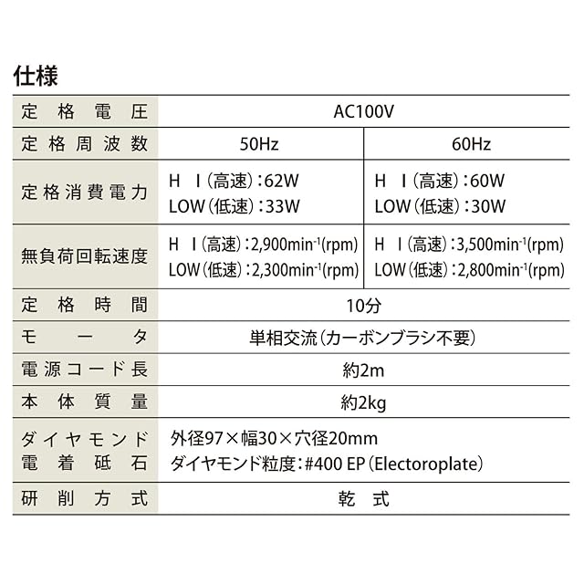 パオック(PAOCK) 両面電着ダイヤモンド刃物グラインダー DWG-100